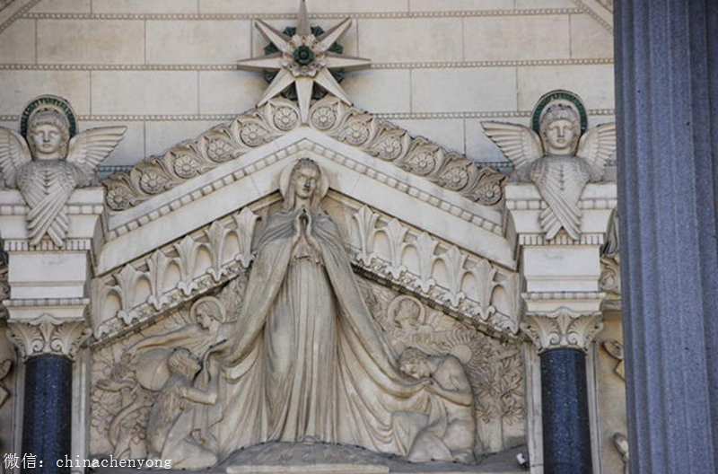 这座教堂融合了拜占庭和中古世纪风格,有各式复杂美丽的的雕刻。