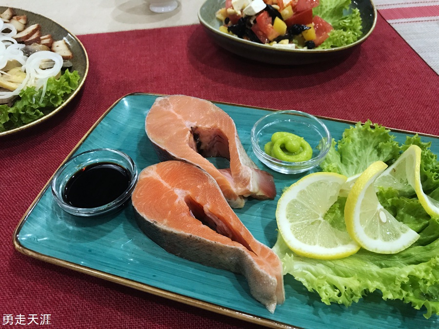 我们叫餐馆准备了伊塞克湖里的虹鳟鱼。