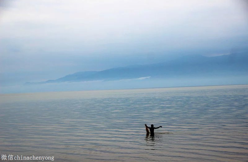 河马对面岸边, 当地人正在钓鱼。估计,他们除了注视着钓鱼还随时注视着这些河马。河马发飙了,也是要伤害人的。