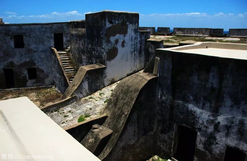 由于岛上淡水缺乏,葡萄牙人在修建城堡时,就把屋顶设计成收集雨水的水池,利用水槽引向城堡内部的蓄水池。