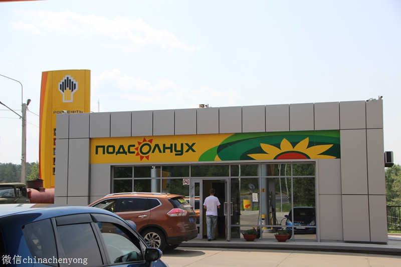 这是俄罗斯最大的石油公司:俄罗斯石油公司(RosneftOil),路上很多地方都有它的加油站。