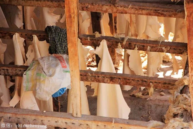 旁边是已经硝过的皮,正在晾干