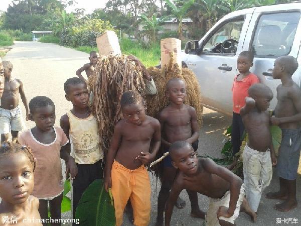 从这里去刚果布的边境需要43公里,路况不好,时不时都有坑。路上除了经过几个小村落能看到人以外,就看不到行人和汽车。我一直在担心,是不是自己走错了,一条通往另外国家的道路,怎么没有看到汽车和过境的行人?