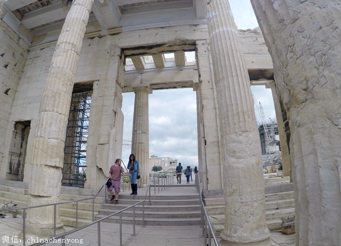 进入卫城,右方就是帕特农神庙,现在正在维修。