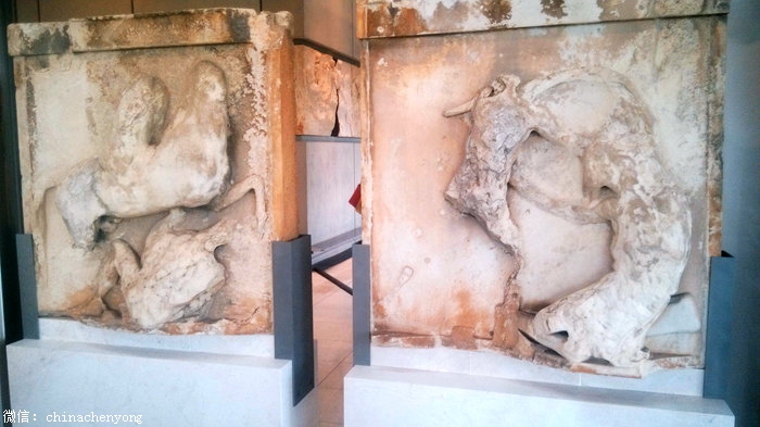 还有伊瑞克提翁神庙的女像柱,真品就在这里,只是可惜,好几个面部都已经风化了。