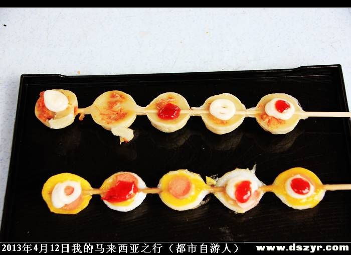 | 这里的海南鸡饭粒很出名,门口都排满了人要进去品尝。我看了,除了饭粒很特别以外,鸡肉的做法跟我们的白砍鸡很类似,所以,我们就没有去排队等候了。 旁边这家中国餐馆---古城鸡饭粒一样有饭粒,看到图片上这么大一个饭粒,我们就先点几个品尝下。 结果端上来,跟汤圆差不多大,就相当于饭团,味道一般,我们重新点了其他的。 |