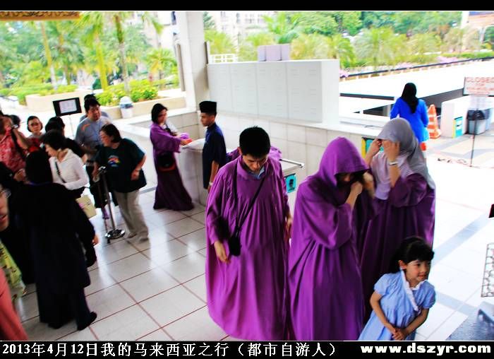 如果你穿着短裤等要进入参观,清真寺大门的工作人员会给你一套当地的衣服披上。