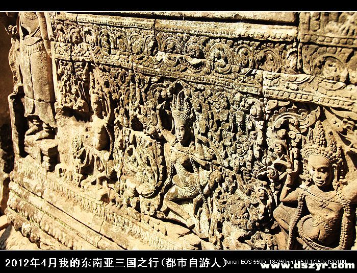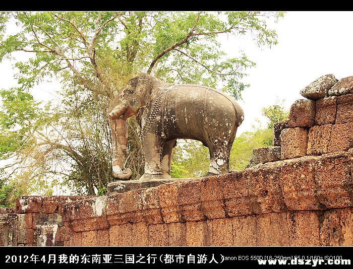 | 斗象台(Elephant Terrace) 出了巴戎寺继续往北走,不远处就到了斗象台。这里是吴哥国王选坐骑的地方,周边的围墙上雕有许多大象和印度教的神像,有些雕像到目前都还很完整,可以看出当时精湛的艺术造诣…… 吴哥的斗象台建於十二世纪末,也是贾耶跋摩七世的年代。台的长度超过三百米,共有三个平台。南部的梯级以三头饰的大象为柱,象鼻卷著莲花。平台的墙壁则雕上狮子和神鸟。 由于我是提前一周才决定前往东南亚的,所以功课都没有时间来做。越南段还查了一些资料,柬埔寨则知道大概。泰国到是出发前在新华书店买了本资料,边走边翻。所以整个行程对吴哥的了解最少。tuktuk司机给我们的中文手绘地图只有大的景观,没有小点的景观。而晨晨和胡南做的功课也不够,导致我们从巴芳寺出来经过斗象台和癞王平台都没有仔细去看,更没有仔细去拍摄。所以一定要提前把资料查仔细!! 以下图片来自网络 斗象台面对吴哥王城的东门,东门也叫胜利门,是古代出门时候必走的城门,国王在此阅兵之后,大军从东门出发,然后凯旋之后从南门回朝。正所谓胜利门出,凯旋门回。 斗象台对面那堆黄色的小塔,就是十二生肖塔 十二生肖塔(Prasats Suor Prat)又称审判塔,至今历史学家对它的用途仍有争议。一种传说如果高棉人起争执需要仲裁,古代法官会裁定两个人按照自己生肖的塔居住,经过一段时间犯罪者就会生病或无法承受不安而认罪;也有一说为古时走钢索卖艺表演的地方。 斗象台壁画 Terrace of the Leper King 癞王平台 Terrace of the Leper King 癞王平台,是一座7米高的平台,比战象平台小很多,只有它的一个外围工事那么大。 这座以巨石垒起的平台有内墙和外墙两层,上面都有精美的雕刻。 它是当时的皇家火葬场所在地,因平台上立有一座裸体但没有性别的真人大小的“癞王”雕像而得名。 空中宫殿 由三层长方形须弥台重叠成金字塔形,象徵须弥山,各层须弥台的四角,装饰著狮子或大象。传说塔顶有个蛇精,蛇精要求国王每天都上去陪她,一日不去,必定有灾祸降临。 |