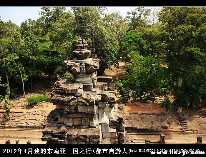 建于12世纪末。它是一座宏大的佛教寺院,坐落在茂密的丛林中,四门上都饰有神鸟伽鲁达浮雕,门上方也有四面佛雕像。