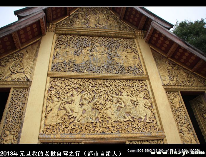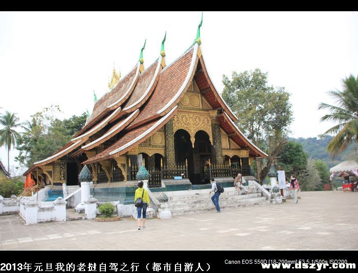 | 香通寺是琅勃拉邦最著名最漂亮的寺庙,寺院内8根粗大的支柱上用黄金刻着图案,把人们的目光引向后面金光闪闪的佛像和光轮覆盖的屋顶。其屋檐很低。 |