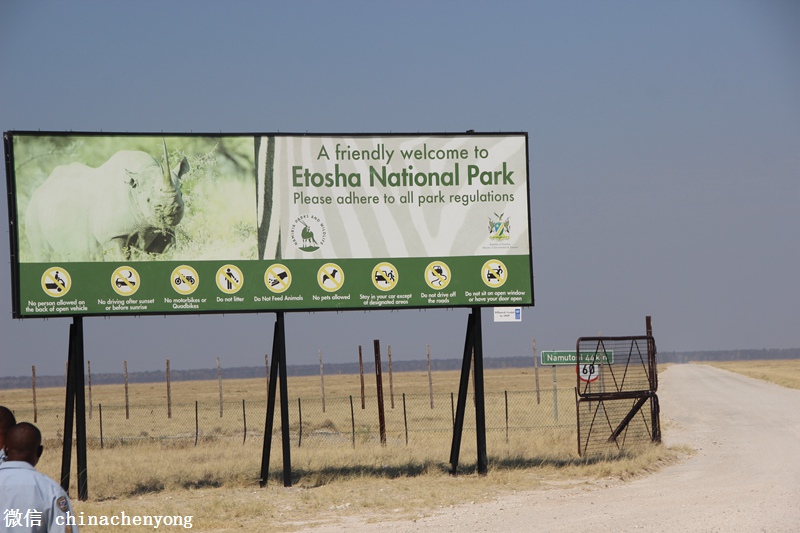 只是我们要去埃托沙国家公园,所以离开了主道。埃托沙国家公园大门,这里门票不贵80纳币,门卫问我们预定房间没有?我说没有,我们进去找。