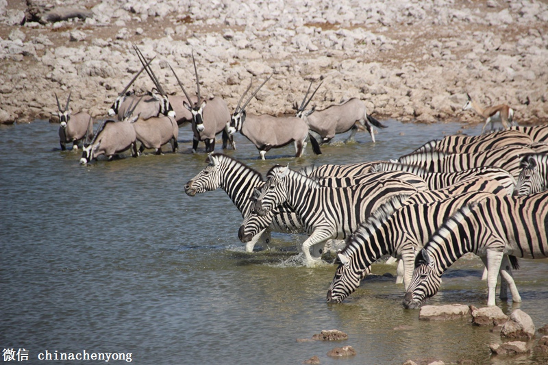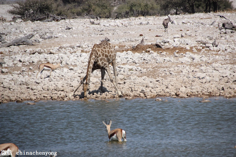 这里看到大批的动物过来喝水,先是羚羊在喝水.