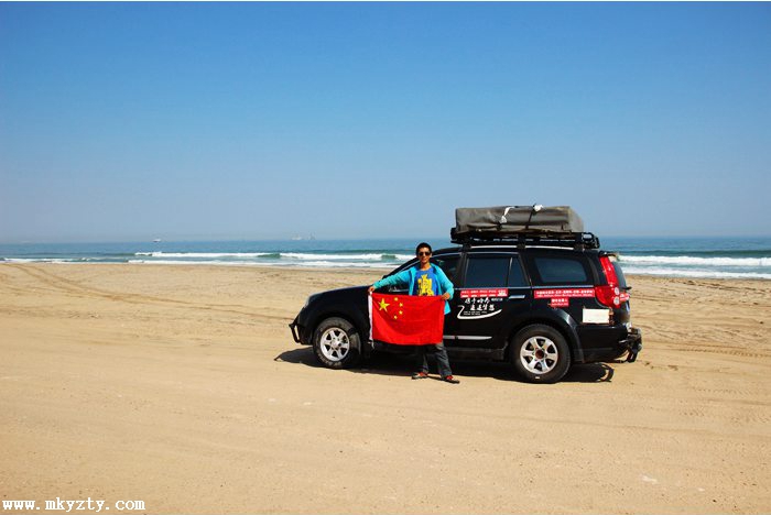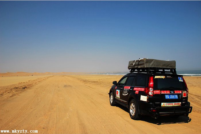 开车前往十字角的途中,公路一方就是沙漠,一方就是海。