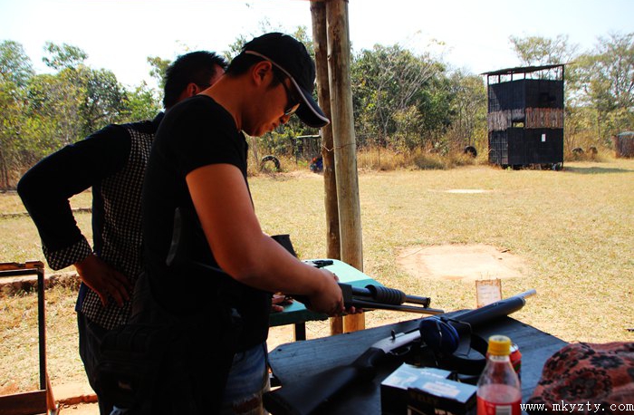 旁边有老外带了狙击步枪和来复枪,枪声太响,我们不得不把耳罩戴上。