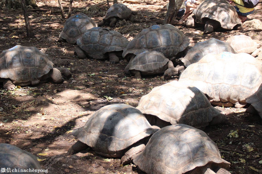进门需要门票 这么多旱龟 桑给巴尔岛本身并无旱龟,这些龟只来源于塞舌尔赠送给英国政府的礼物,之前养在其他地方。由于象龟经常被盗,数量经过很长一段时间都没有增长,英国政府决定把这些龟集体迁到监狱岛来圈养,于是,渐渐形成了今天的龟岛。 它们在树林里爬啊爬啊,速度太慢了。 旱龟的承载量还是蛮大的,大点的旱龟,能托动几个人。 |