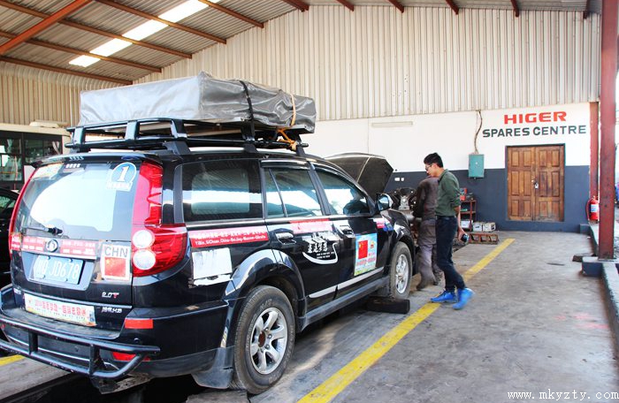我的车门被撬坏了以后,可以锁门,就是任何一把钥匙都能打开。关键是没有锁的配件,这就麻烦了,不能锁门,连简单的防盗都谈不上了。赞比亚中华商会、福建同乡会的吴明会长叫我到他们维修厂去修锁和做免费保养。他们在这里是销售陕西海格客车的,做的不错。