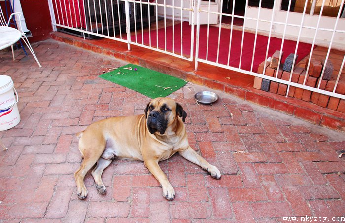 他们家也喂养了一条非洲獒,而且还立了功。他们原来的围墙比较矮,在加高的过程中,有窃贼翻墙进入。