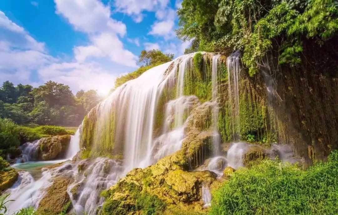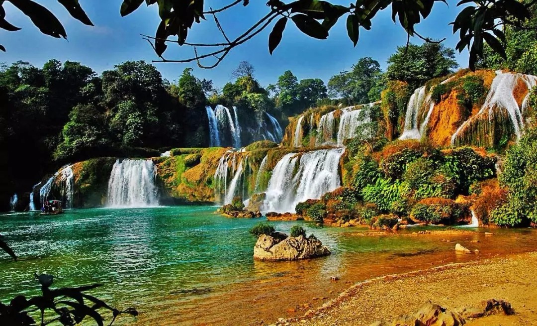 德天大瀑布位于广西大新县硕龙镇德天村,中国与越南边境处的归春河上游,瀑布气势磅礴、蔚为壮观,是亚洲第一、世界第四大跨国瀑布。还是《酒是故乡醇》和《花千骨》的外景拍摄地,神奇而美妙。